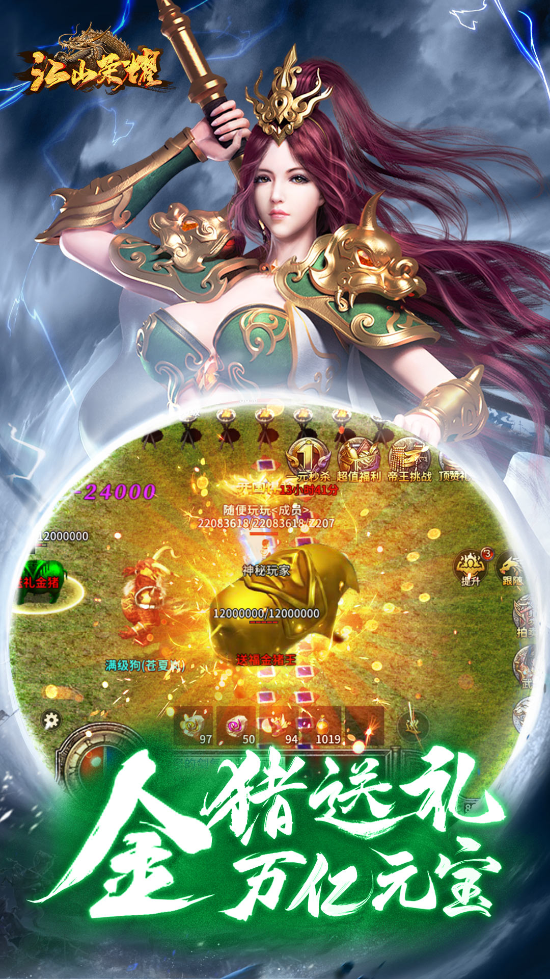 经过长时间的努力和精心制作,我们主打免费首充的高清超变传奇新作《江山荣耀》就要正式上线了。这是一款充满激情、策略与荣耀的传奇手游,我们希望通过它,为玩家们带来前所未有的游戏体验。游戏独创特色武侍系统、坐骑系统、藏品系统,地图打怪爆真充红包。在这里玩家可以体验非常真实的打击感和刀刀切割的热血玩法,同时更有爆率拉升,在线巡航,解放双手,夺取金猪王,一夜暴富,各种极品神装全都可以轻松爆出来,是你绝对不能错过的良心传奇!