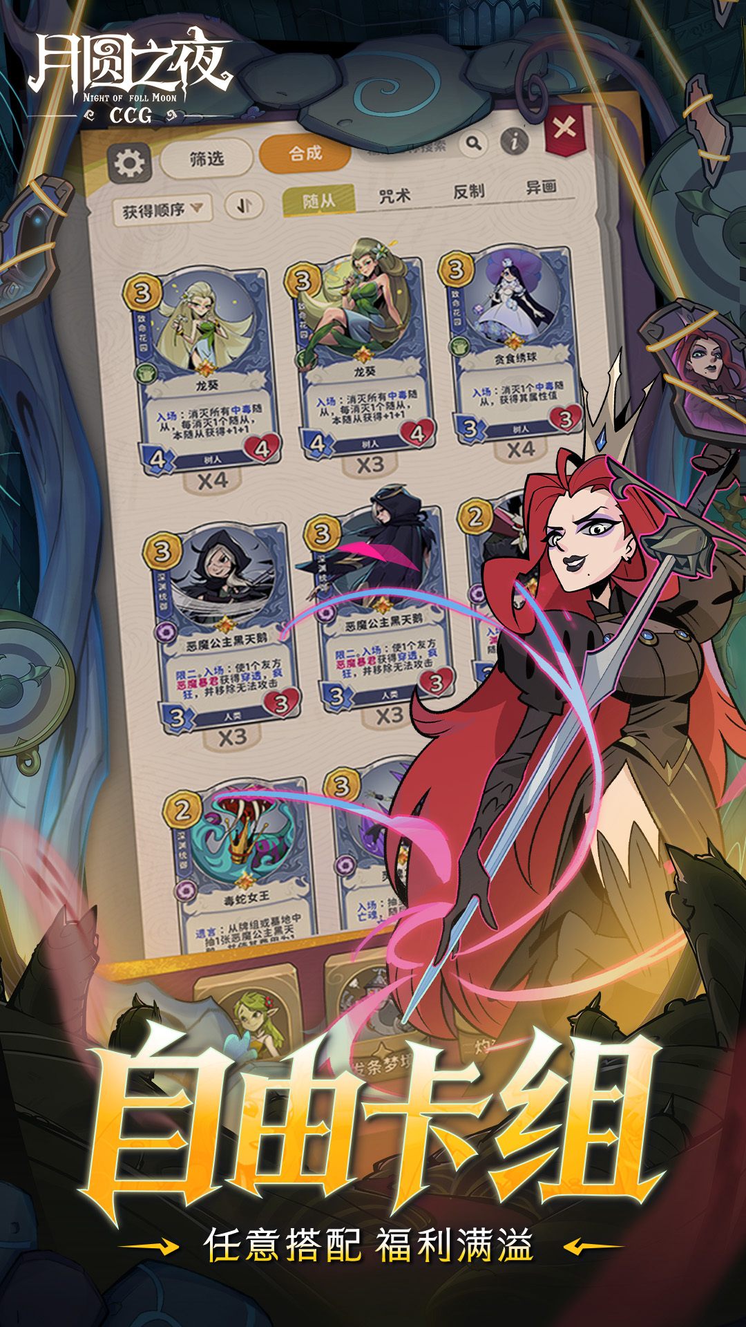 * 九种职业、六百多张卡牌自由搭配