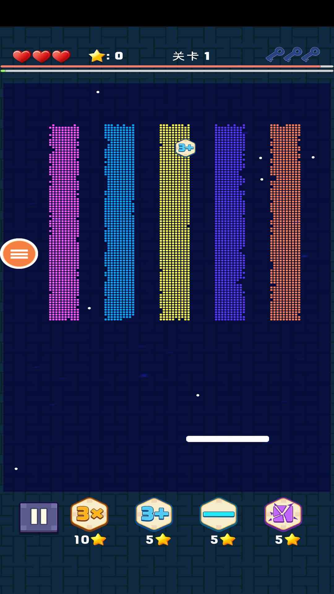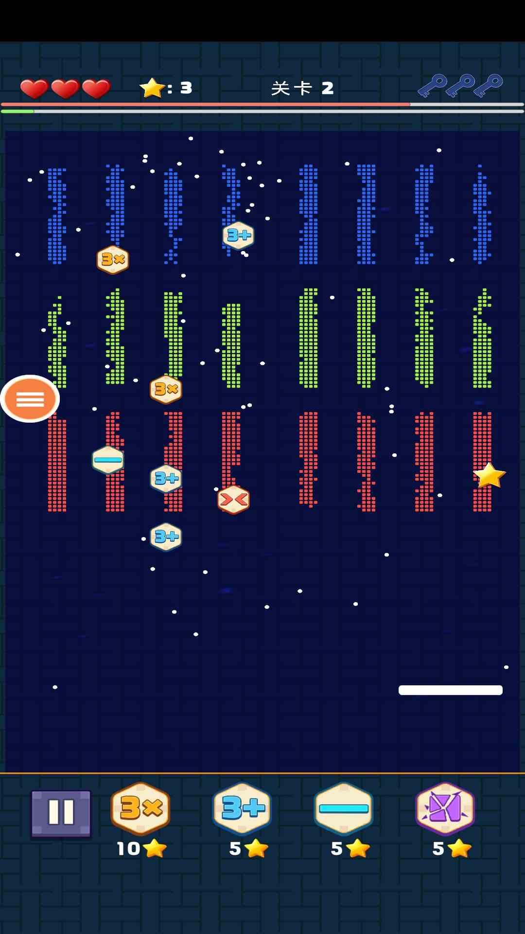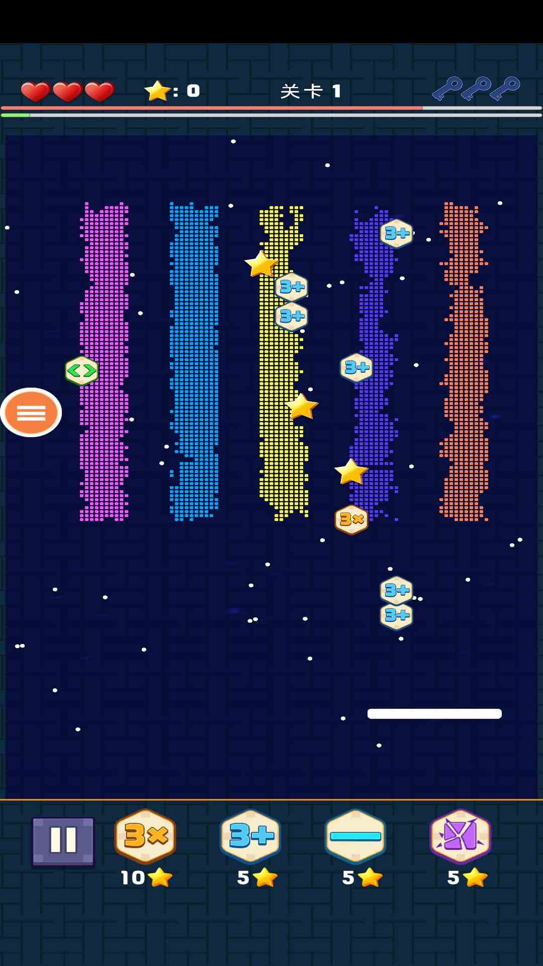 一款休闲益智的打砖块游戏,经典的打砖块元素,带给你独特的体验,通过完成打砖块挑战来更好的挑战各种角度的发球,通过你的判断来成功的击碎所有砖块。
