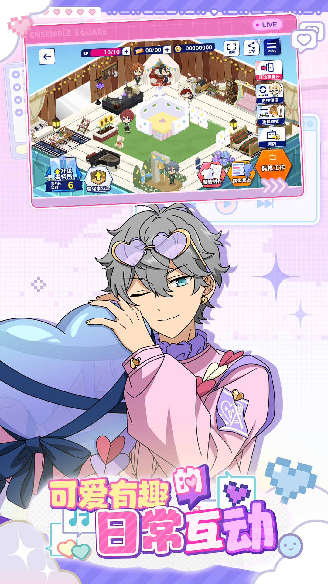 《偶像梦幻祭2》是一款基于偶像梦幻祭IP的全方位沉浸式音乐手游,续写梦之咲学院的故事,集结49位风格各异的少年偶像。游戏提供3D演唱会模式,玩家可在豪华的3D场景中体验节奏游戏,自由设置C位,感受偶像们的舞台魅力。同时,玩家可以DIY专属偶像办公室,通过布置家具和提升等级解锁更多玩法。剧情由轻小说作家日日日执笔,延续前作情节,展现偶像们的成长与蜕变,带来更为紧张刺激的偶像生活篇章。