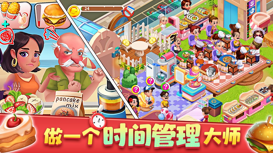 在一个充满魅力的世界中,玩家将扮演一位年轻的餐厅老板,通过不断努力经营,将一家小餐馆逐步发展成为享誉全球的美食殿堂并拓展到世界各地。玩家的任务是通过智慧和努力,将这家餐厅改造成为城市中最受欢迎和最具人气的美食圣地。