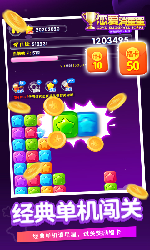 《恋爱消星星》是一款休闲益智消除游戏,画面精美、音乐轻快,以星星消除为核心玩法。它在传统单机模式基础上,创新加入联网对战功能,融合多元玩法,打破单一模式,兼具挑战性与趣味性。游戏不仅提供紧张刺激的消除体验,还能锻炼思维能力,适合各年龄层玩家。
