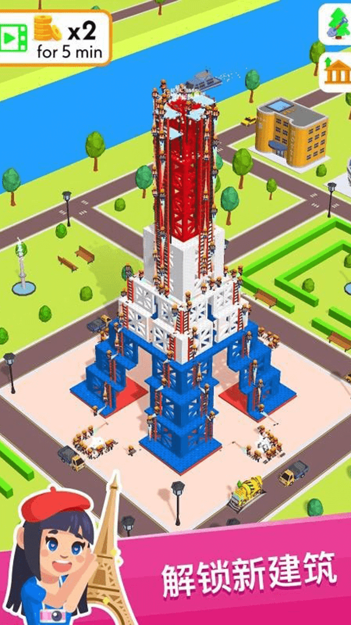 【快乐盖楼】是一款休闲放置建筑游戏,在这里你要做的就是建造一座又一座大楼,从简单的基础房屋开始,到世界上最著名的梦想城堡,创造建筑帝国。游戏过程中,不断招募工人参与建造,工人越多建造越快。