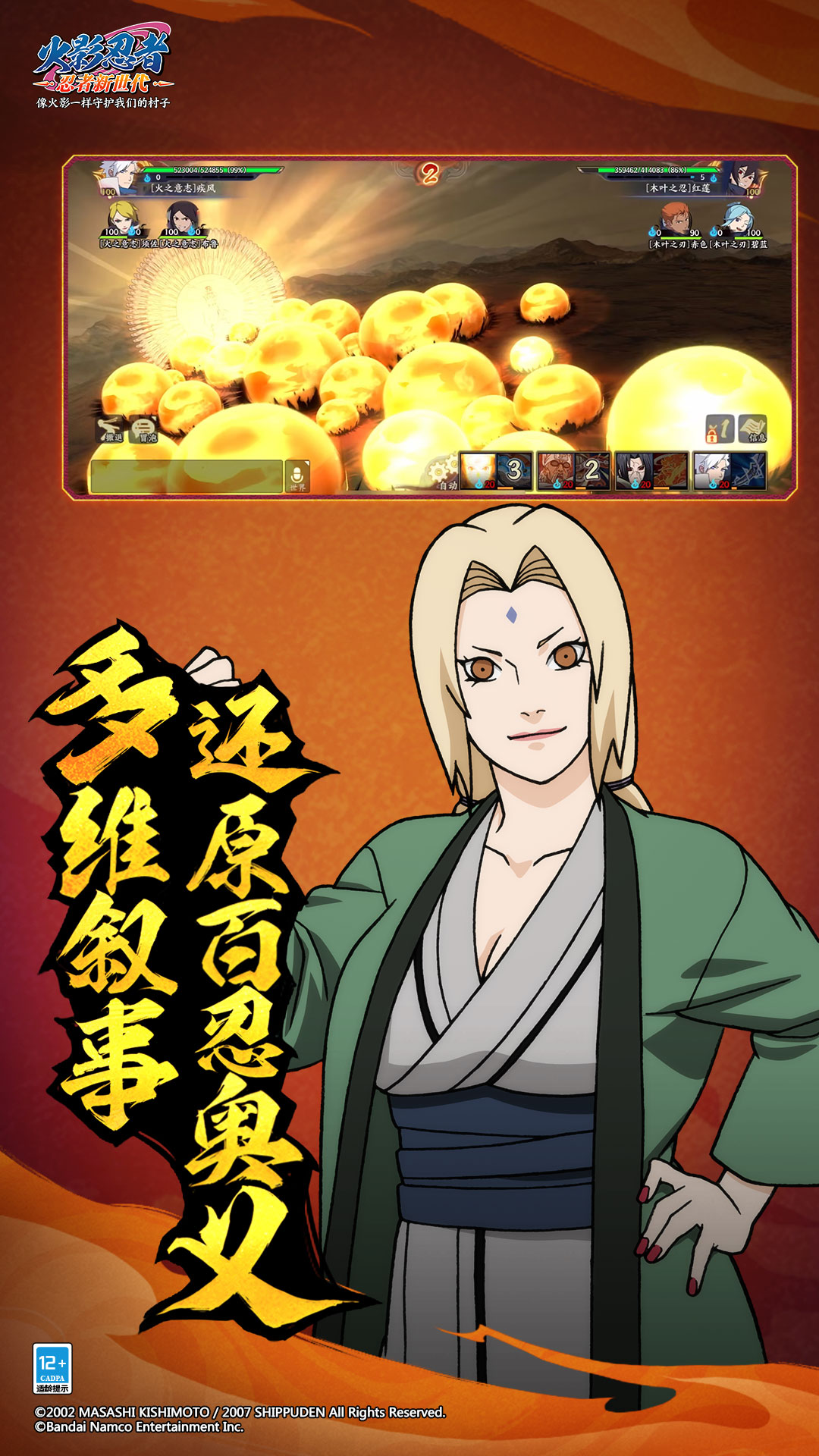 《火影忍者:忍者新世代》为官方正版授权的大世界高自由回合策略RPG手游。玩家可扮演各具特色的风、雷、水、土、火五属性原创主角,亲历原著经典桥段与感人瞬间,在宏大的世界中自由探索,打造最强忍者小队,结交同伴,并肩作战!