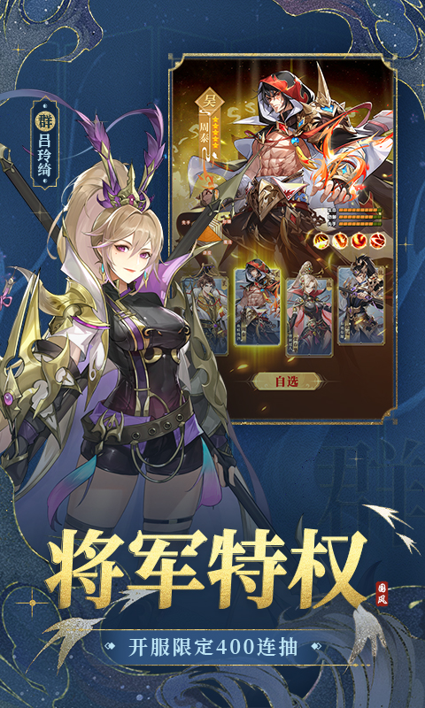 2、登录领400抽,可自选橙将,搭建满配阵容;