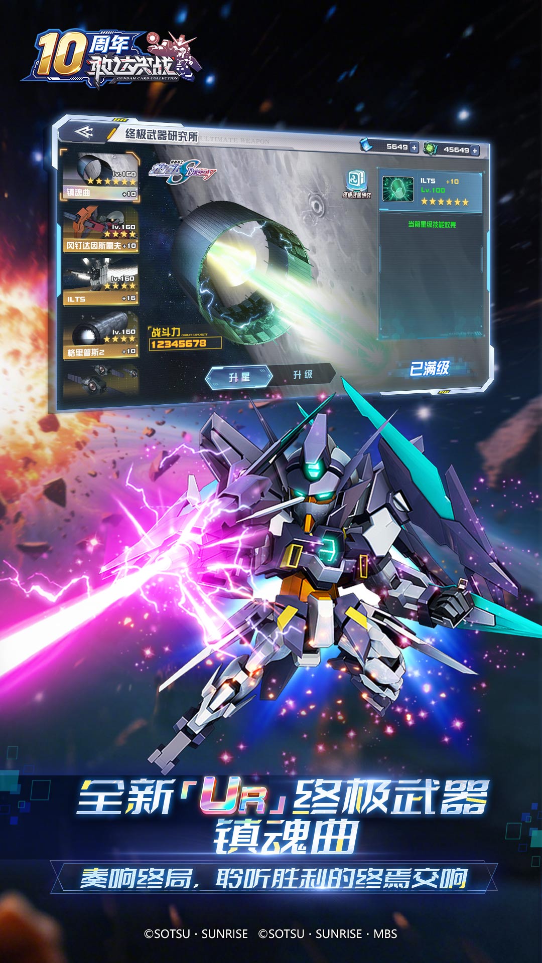 《敢达决战》全新2.0版本开启新纪元!殖民卫星重建完毕,主城焕新,王牌指挥官准备作战!美术升级,界面优化,体验全新游戏世界,机体重塑,必杀技能效果燃炸全场, 联合作战开启,宇宙对抗,全局预览运筹帷幄!《敢达决战》2.0等你来探索。