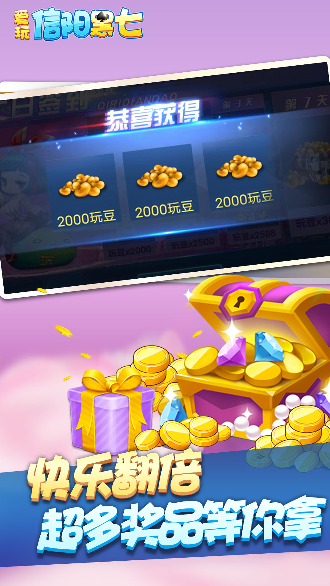 游戏福利每日送:金币登录送、破产送、任务送,活动送。