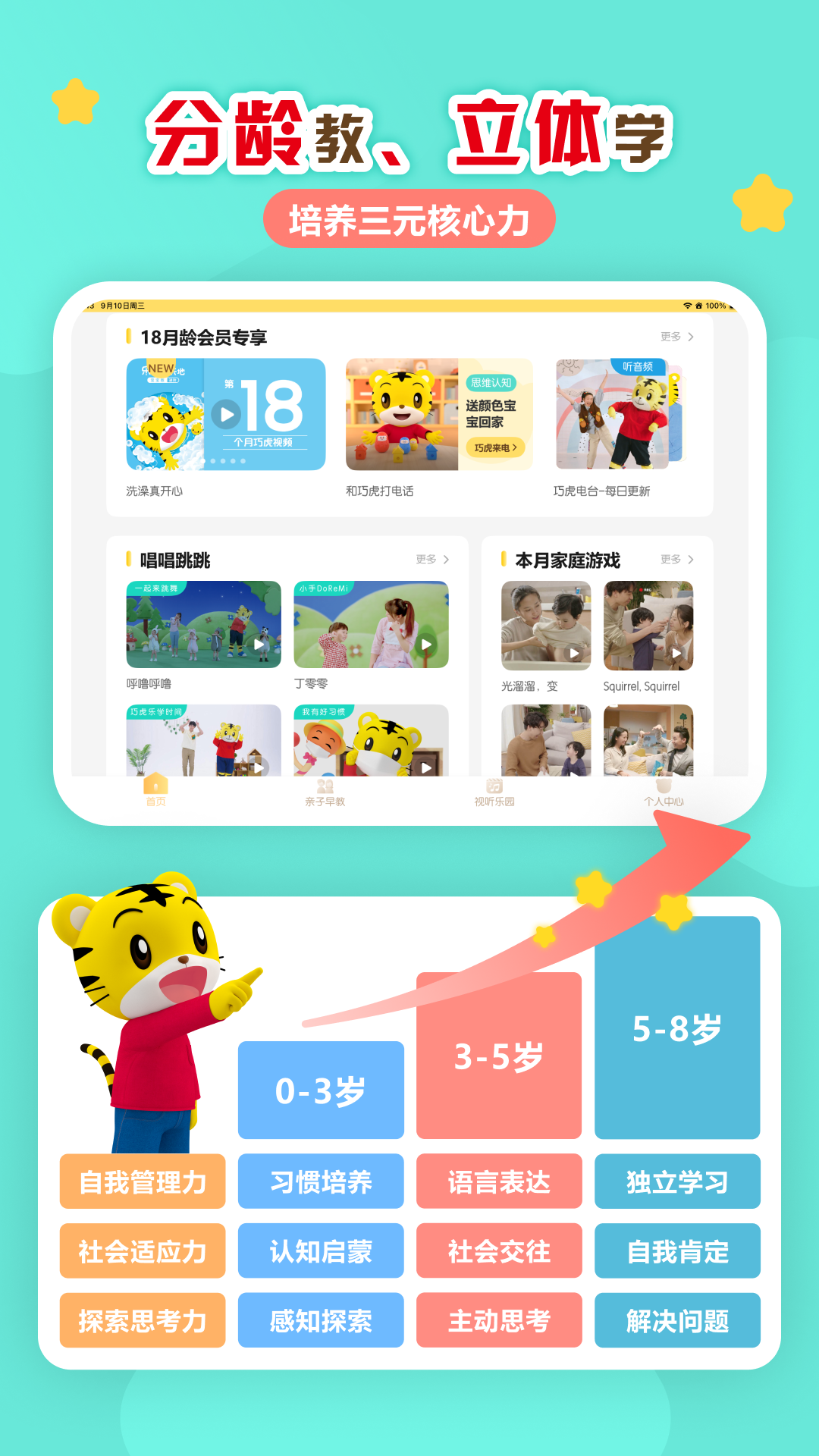 巧虎官方App为7个月至8岁儿童提供在线教育内容,由专业团队开发,联合知名专家打造个性化、分龄的学习内容,旨在提高儿童的三元核心力,帮助家长掌握先进的教育理念,每月更新涵盖亲子互动至逻辑阅读的多领域内容,助力儿童全面成长。