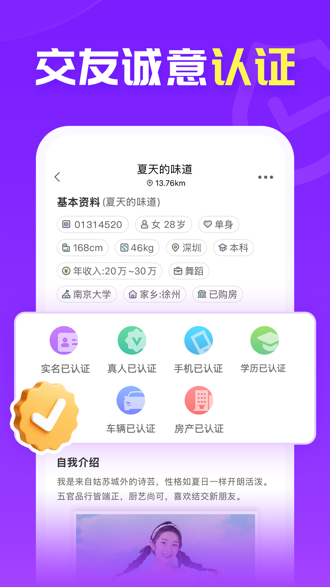 在爱聊,有超过9成的用户已通过真人认证,爱聊还支持用户身份实名、学历、房车等多维度诚意认证。