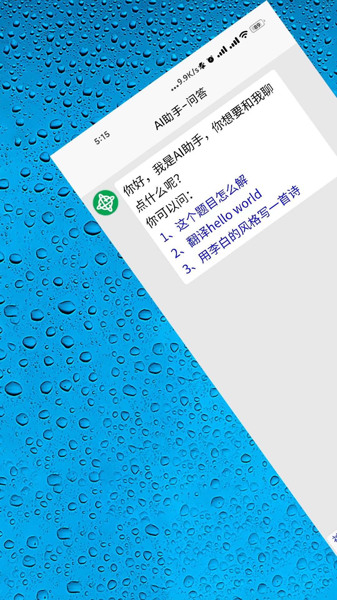 AI智能助手APP通过人工智能技术,整合了多功能模块,如聊天问答、绘图、翻译和写作。这些模块旨在帮助用户高效地解决工作和生活问题,例如回答问题、创建视觉内容、翻译文本或生成文本,从而提高他们的效率和生产力。