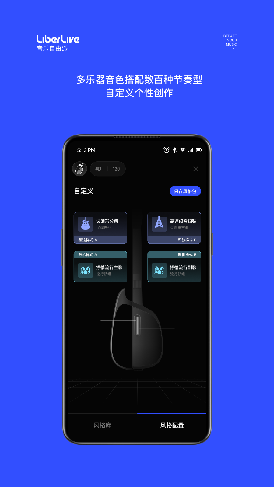 通过风格配置你可以从调、节拍速度、和弦键位、节奏型、鼓机五大元素去构建你的专属现场风格。
