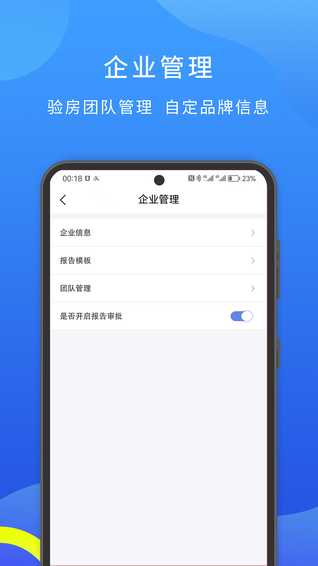 验房企业可选择是否开启对验房师创建的验房报告进行审批管理的功能,如开启,则经审批同意后的报告才能进行下载、分享。帮助验房企业把控验房质量、提高客户满意度、规避经营风险。