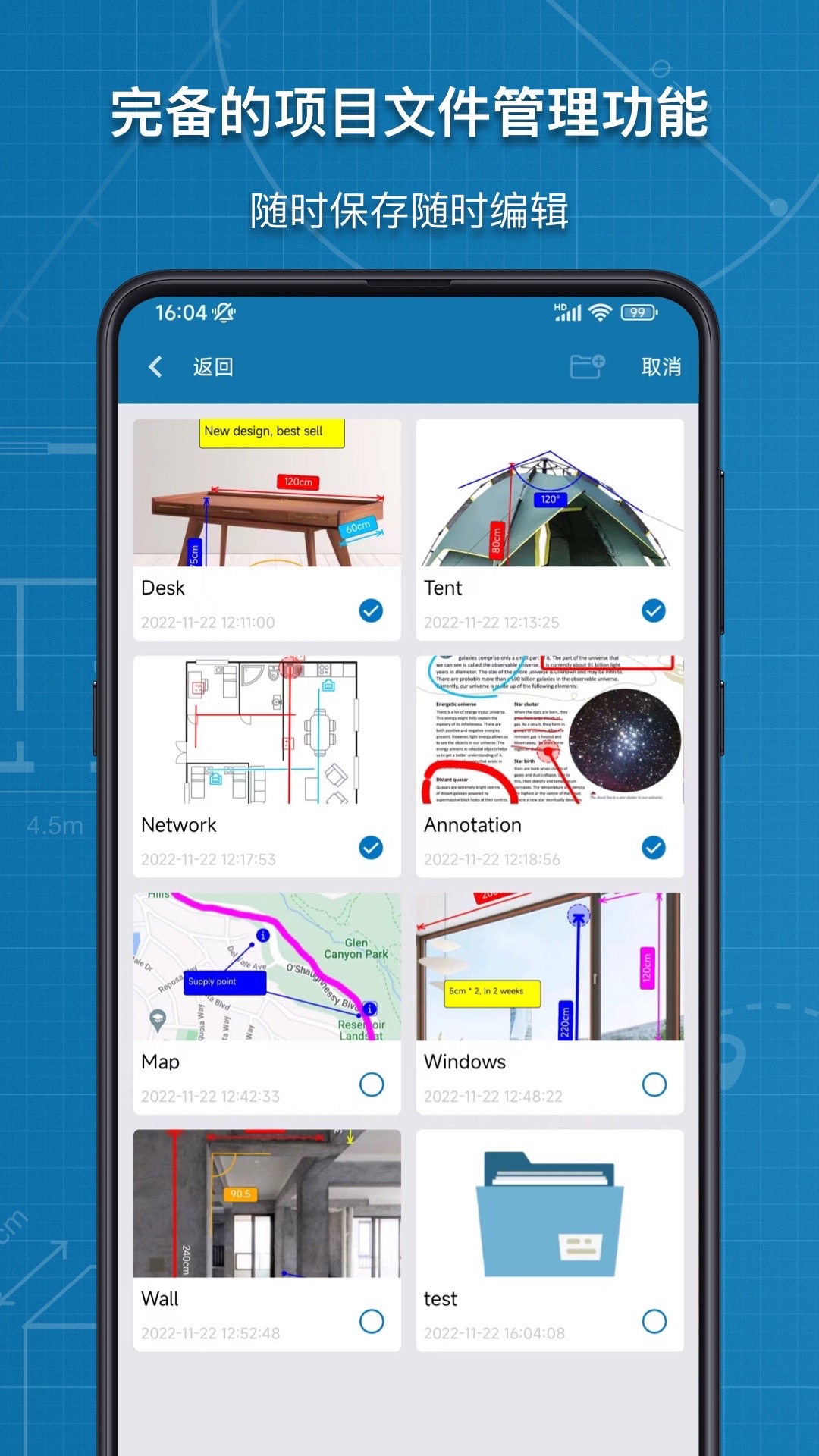 PhotosMeasure是一款简单易用的图片标注工具,可帮助您快速在图片上标记物体尺寸、面积、体积等信息。应用场景广泛,涵盖装修设计、商品展示、健身锻炼、地图标记等领域。您可以通过拍照或从相册选择图片,并在上面添加长度、大小、角度、文本注释、形状等元素,并将标记结果保存或分享。 PhotosMeasure 还提供项目列表存储、批量导出、备份恢复等功能,有效提高工作效率。