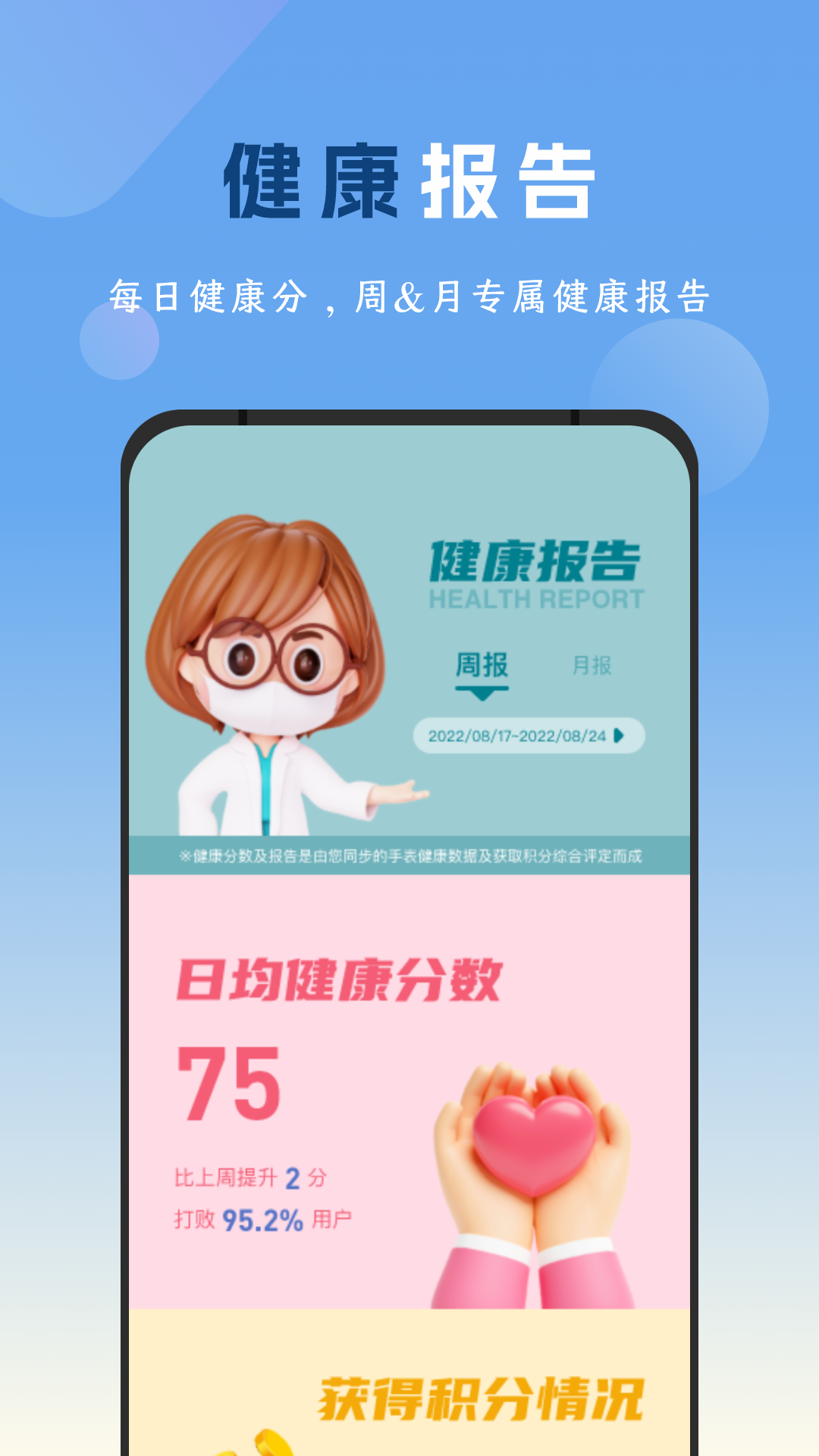 【健康激励】为鼓励用户健康行为,在使用服务期间可获得相关积分激励,并可在线兑换相关服务和商品。