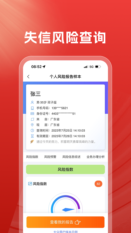 2、普通大众,可了解自身风险,保障资产安全。提供个人风险自动预警,防止发生身份被冒用、被失信、被限制消费、被黑名单、被执行等,及时化解各种风险。