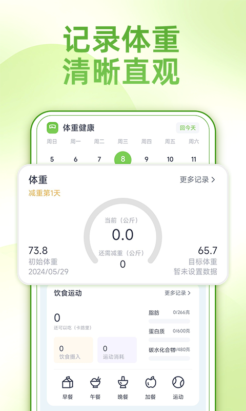 1.体重记录: 每日记录体重,应用自动生成体重变化趋势图。