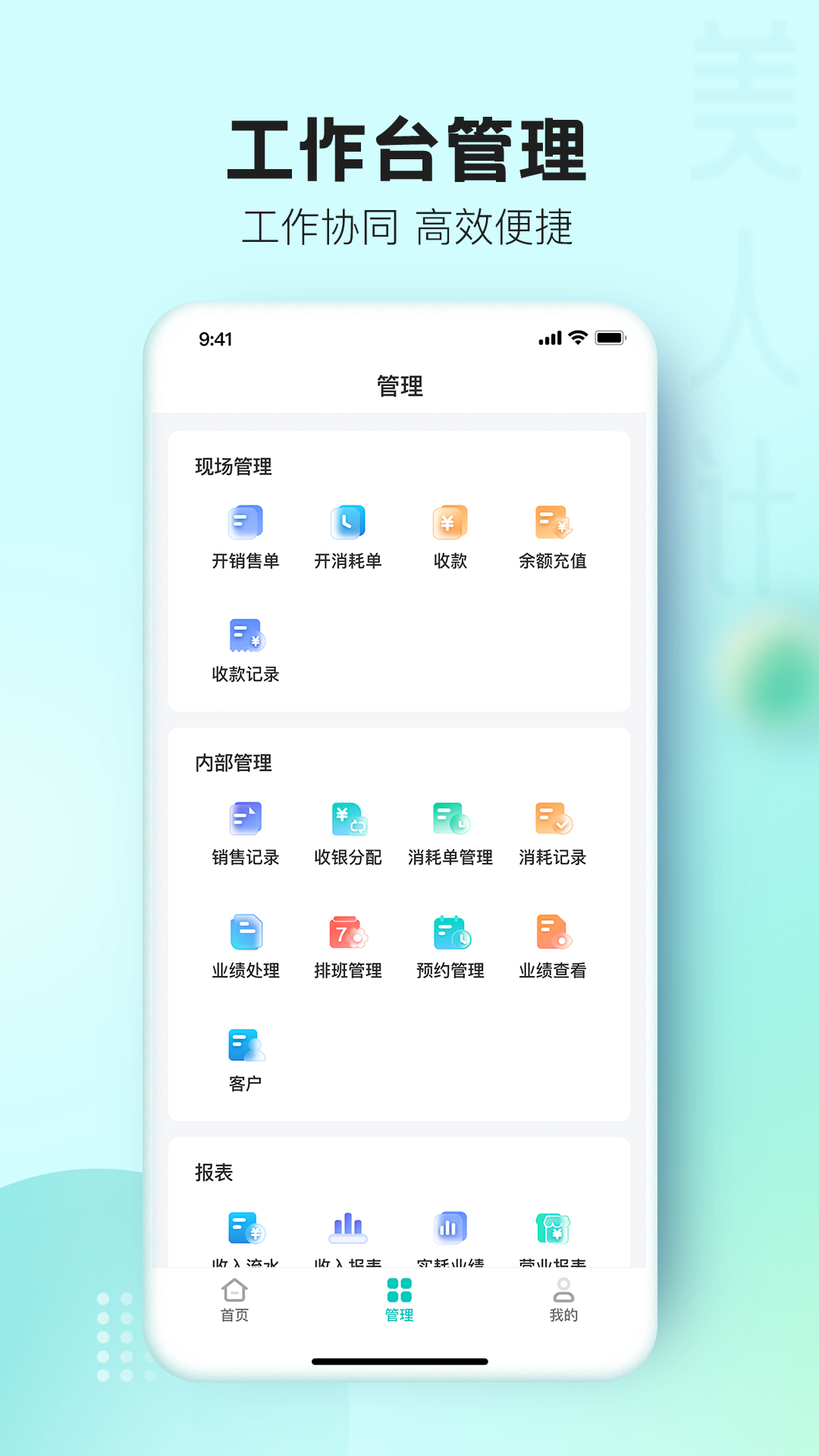 这款APP专为美业连锁商家设计,将原本复杂的业务系统搬到移动端,方便商家随时随地了解门店开单情况、服务状况和门店业绩。同时,员工也可以通过APP快速完成开单、核销和预约等操作,大幅提升工作效率,并实时查看个人业绩和收入数据。