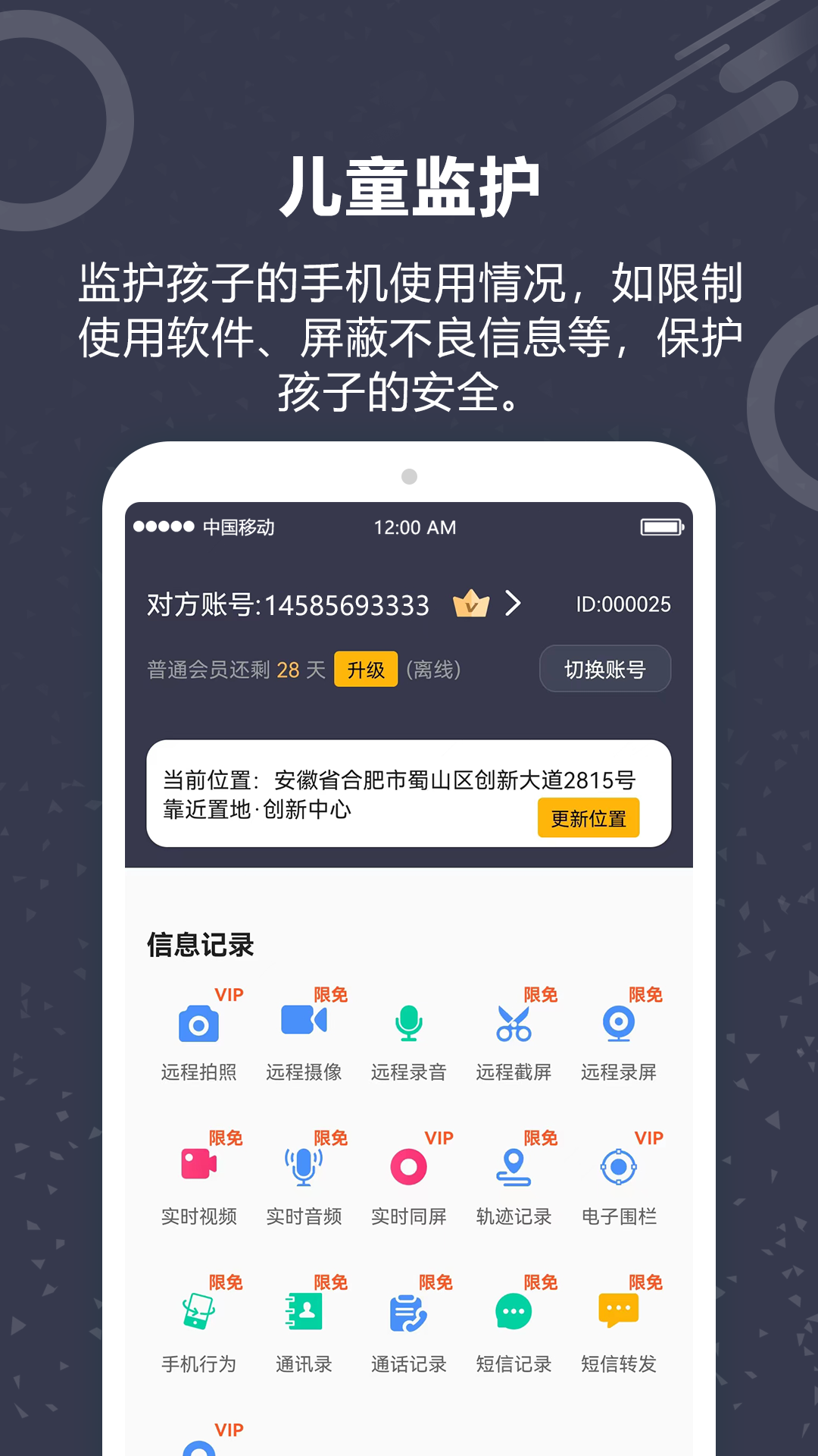 远程拍照和远程录音功能可以让您通过手机远程控制拍照和录音,无需亲自操作手机。这对于防止手机被盗或者监护对象的安全非常有帮助。