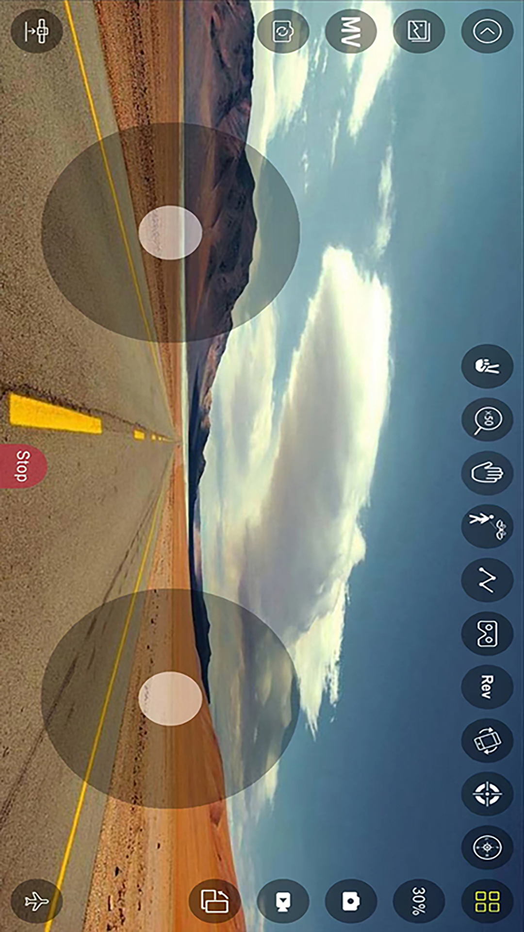 1. 手动摇杆操控、重力感应操控、画线轨迹飞行。