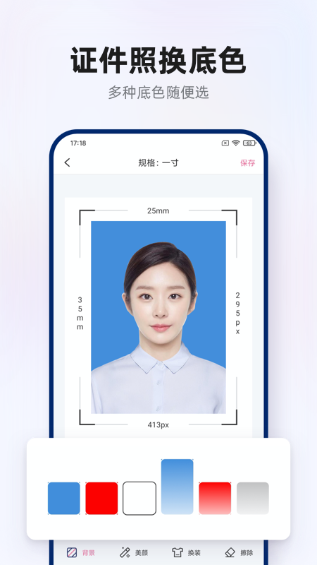 这款智能证件照拍摄APP利用先进的人工智能算法,让您无需专业设备,即可用手机轻松拍摄高质量的证件照。它支持多种尺寸选择,涵盖日常所需的寸照、证件照、考试证等,并提供自然美颜功能,确保照片清晰自然。此外,App还提供多种精美正装供用户选择,帮助您拍出更专业的证件照。