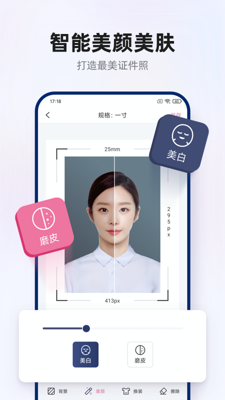 专业的美颜工具,自动对照片人像进行磨皮,美白等操作,制作自然好看的证件照,保证照片不失真。