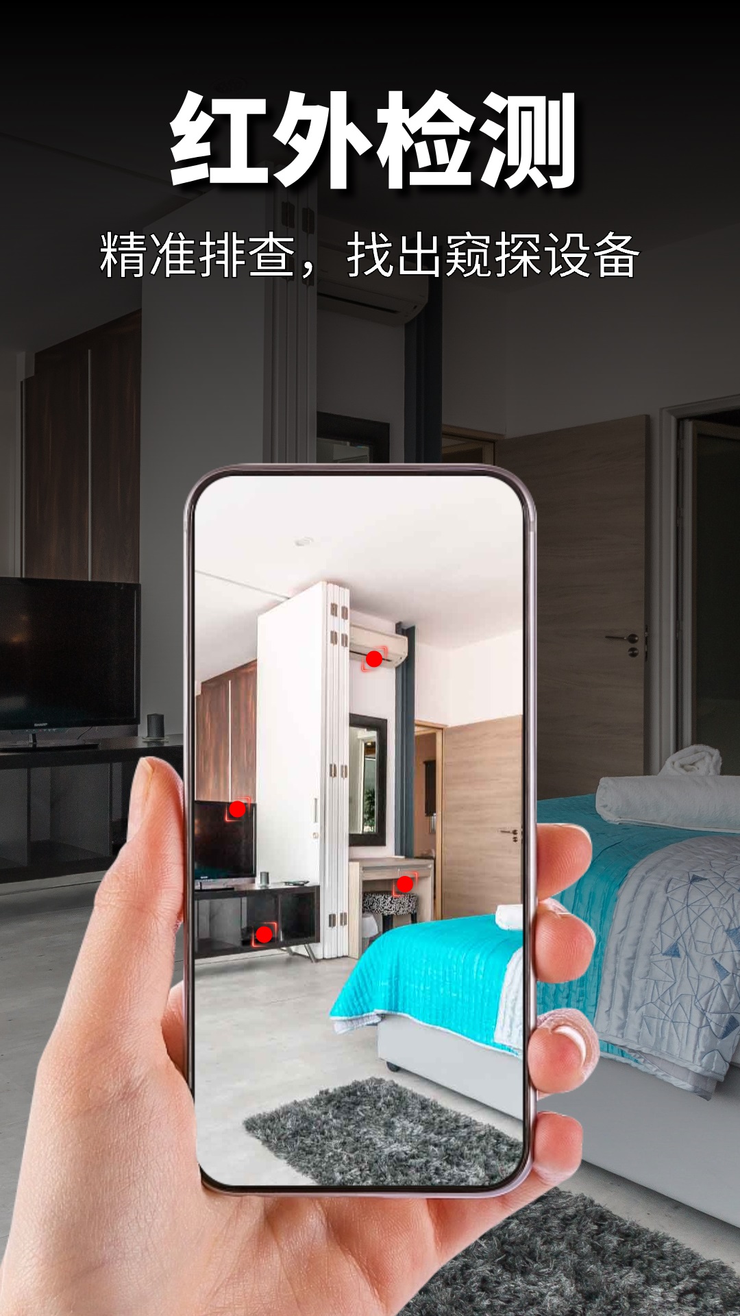 摄像头检测:一键检测、快速分析,您手机上的防拍专家,保护您的出行住宿隐私安全。