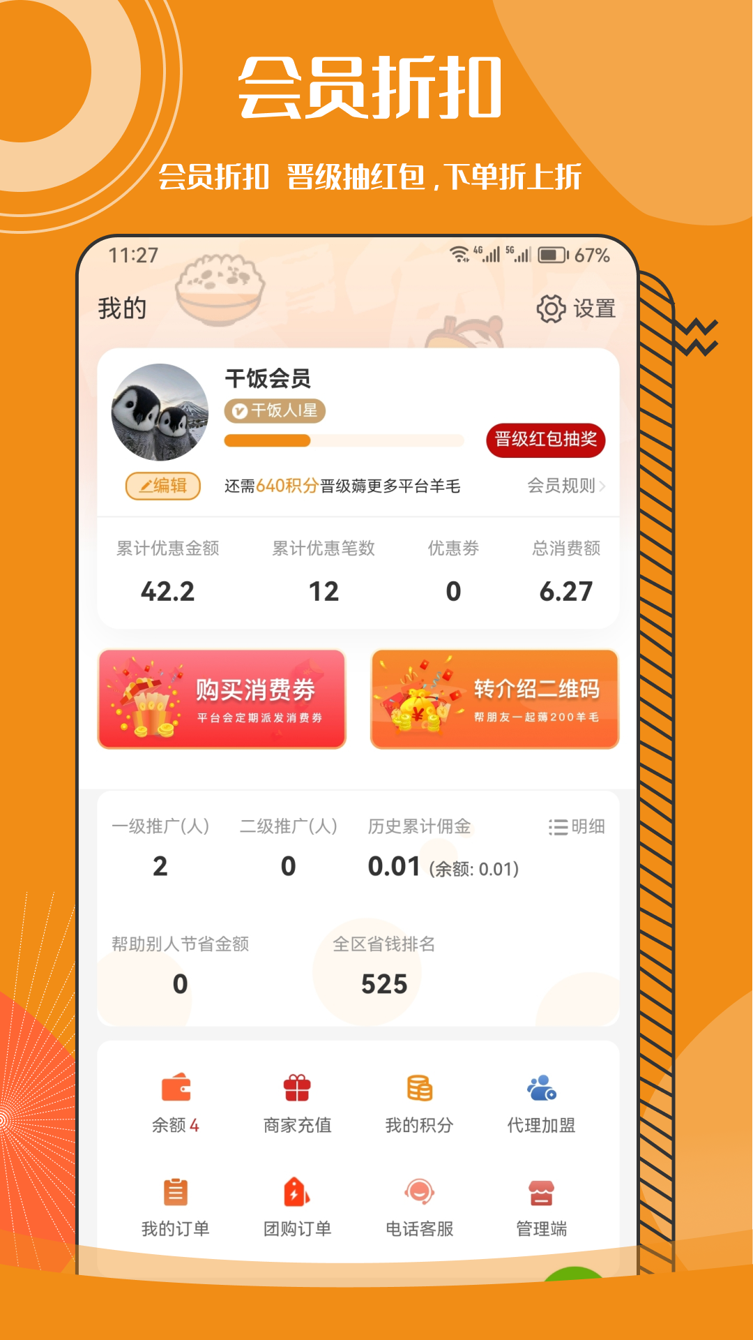 干饭VIP会员卡是针对餐饮、休闲娱乐、果蔬生鲜、培训等的通用会员卡,消费者消费买单即可享受商家的会员折扣价格。省钱才是硬道理!