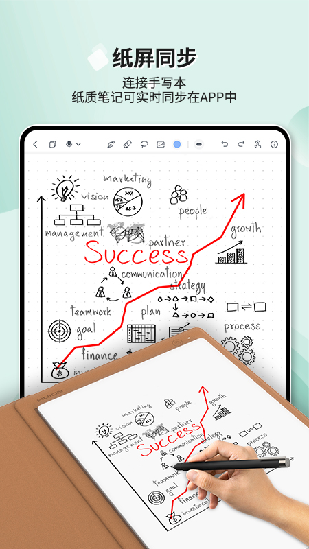 ● 连接智能手写本使用可将真实的手写笔记同步到APP中,永久的保存