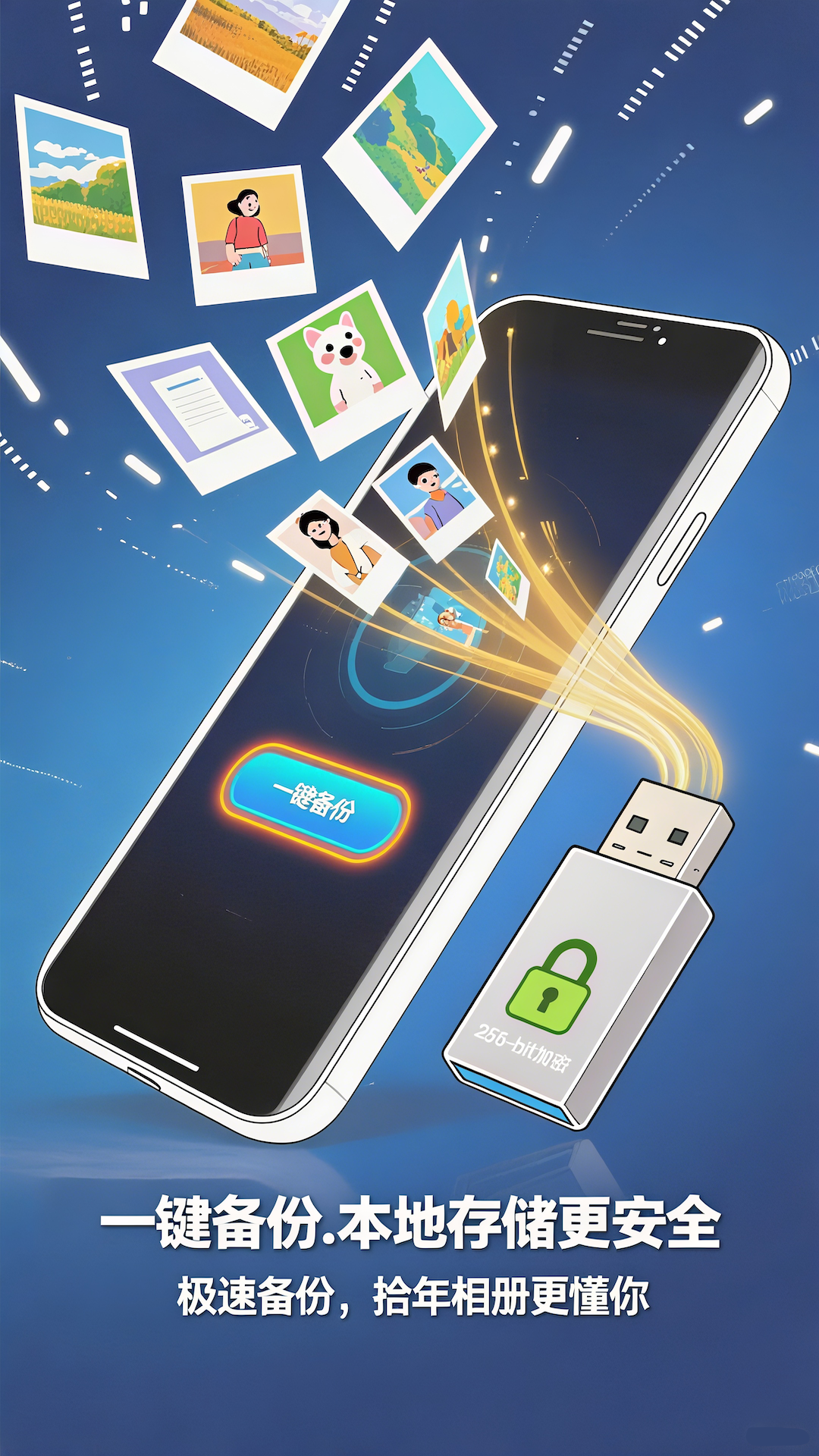 一键备份:非常方便把相册备份到本地U硬盘,也非常方便从U盘里进行还原