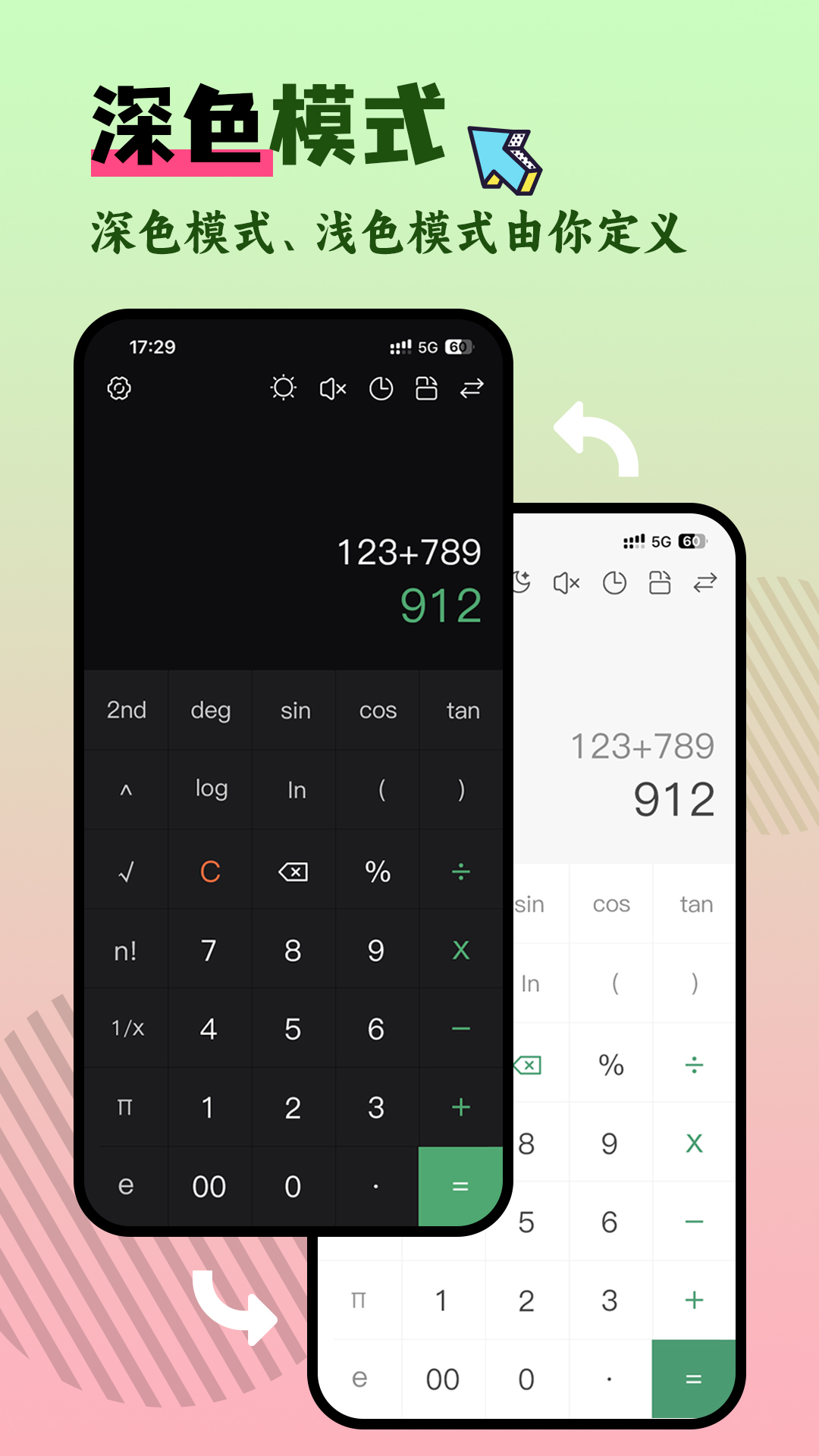2)支持阶乘、角度制和弧度运算、平方运算等等
