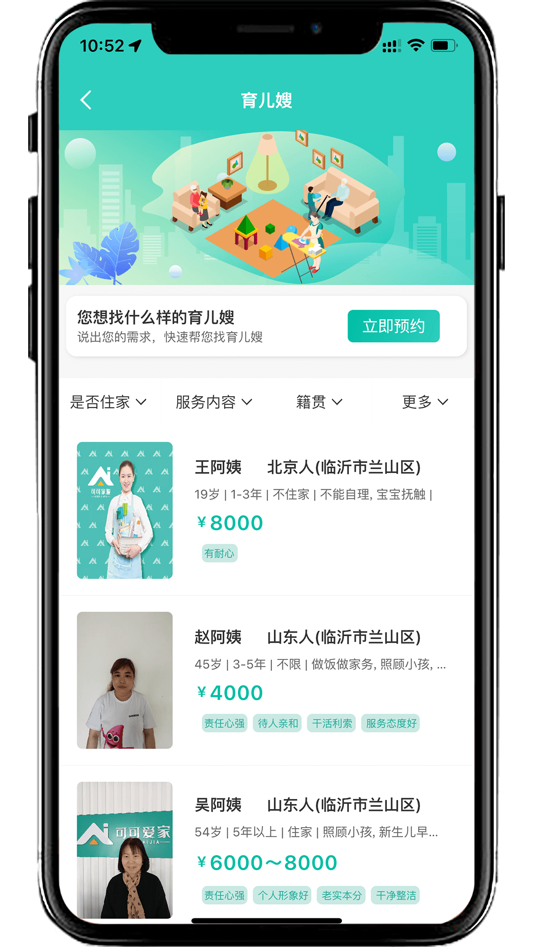 可可家服,中国四亿五千万家庭的首选,他以互联网+生活服务类为平台,梳理推介家政服务项目,提供各类个性化家政服务,满足不同层次、不同类别、不同家庭的服务需求!创新服务、颠覆传统,开创性的采用滴滴抢单的模式,整合城市所有生活服务类、技能服务者和门店!帮助个人线下及门店线下转型 线上升级,采用集抢单、派单,智能匹配的技术模式、输出形式,以全新的服务理念、前沿的专业知识、科学的操作技能,奠定服务高质量、实现服务多元化,让服务更细致、更专业、更贴心!