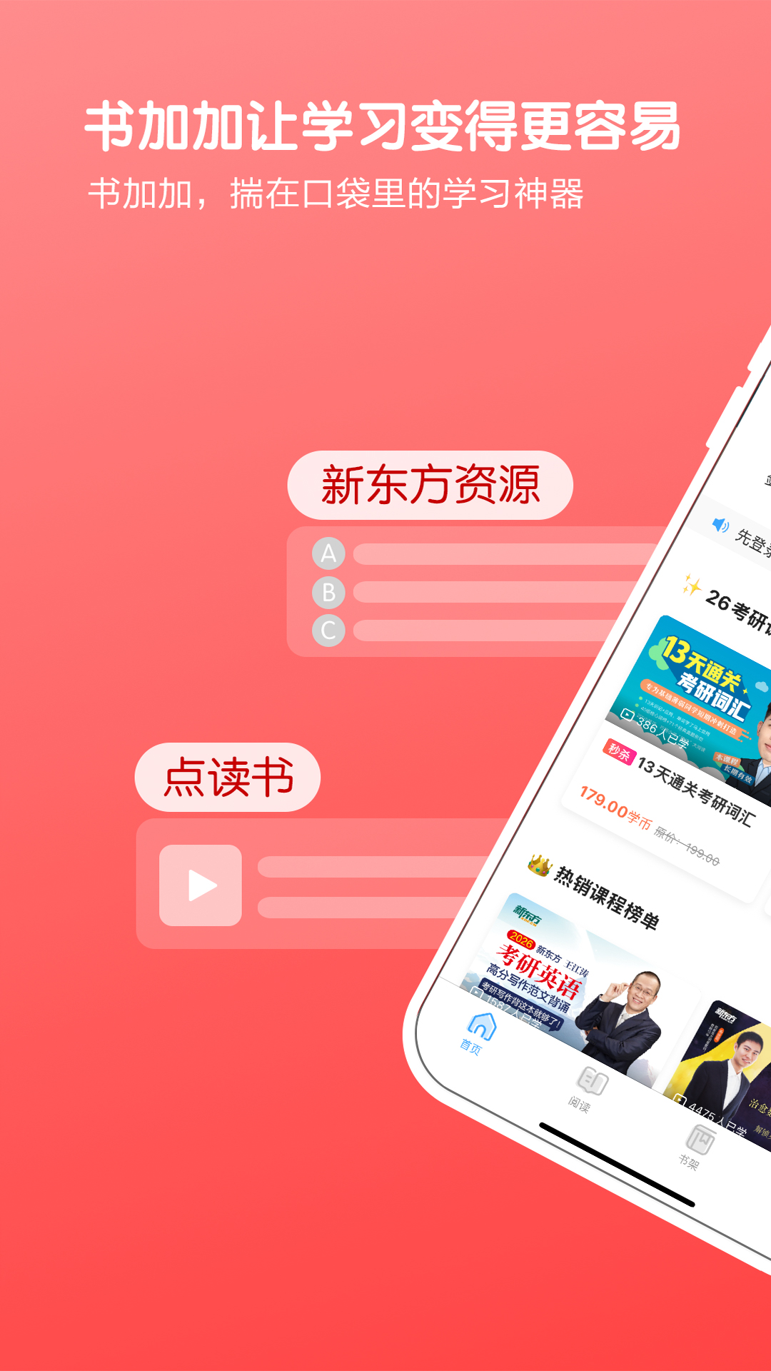 书加加,一款让你随时随地可以尽情读、悦耳听、轻松考的APP。无论你是中学生、大学生、研究生,还是职场白领,这里都有适合你的海量学习资源,跟着书加加,考试So Easy!