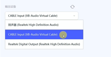 2、选择输出设备:输出设备要选成你安装好的虚拟声卡,这样才能变声。
