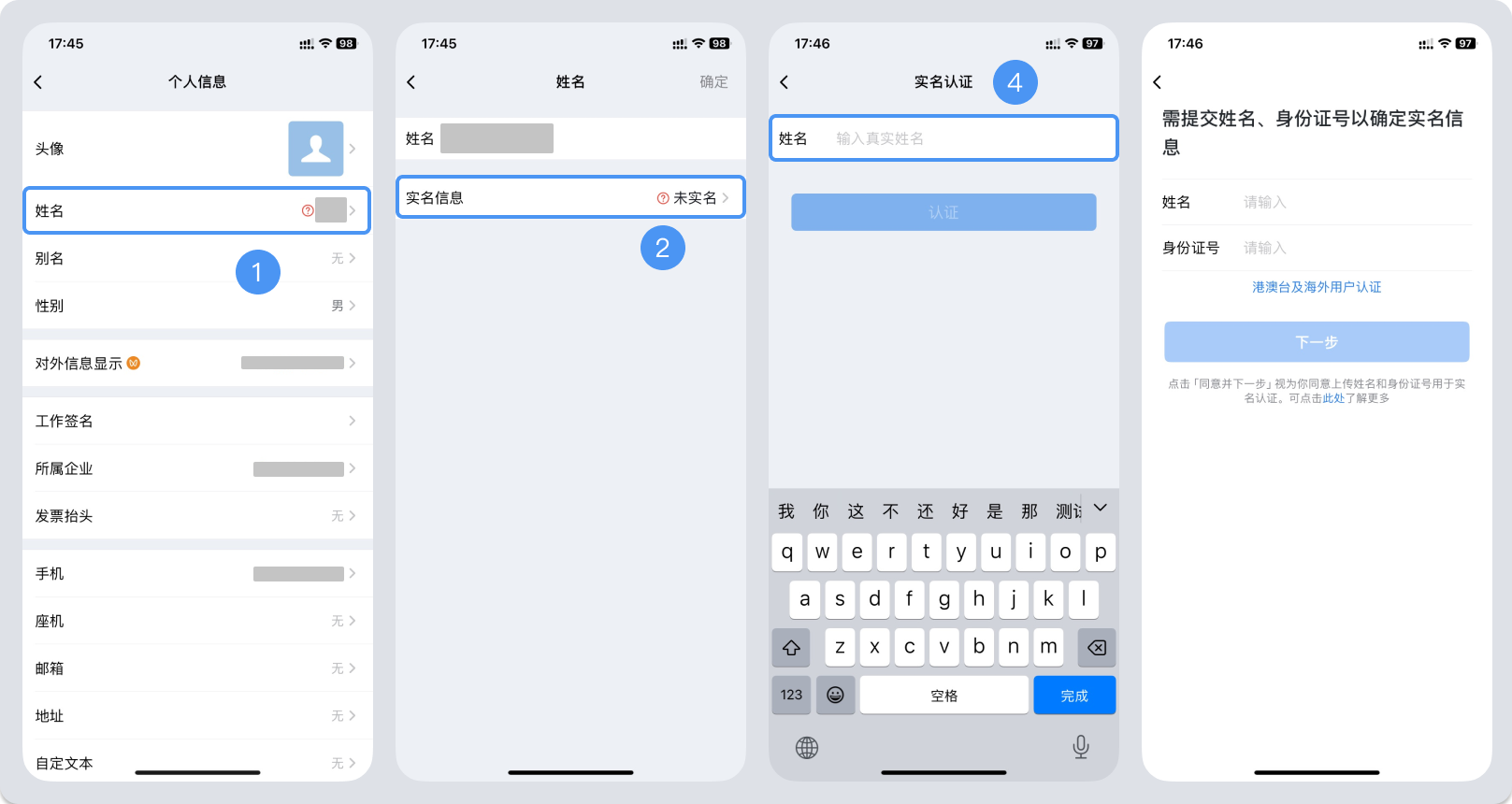 企业微信实名认证的方法如下: