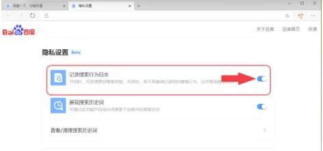 3、关闭日志记录:找到“记录搜索行为日志”开关,点击右侧将其关闭以停止记录。