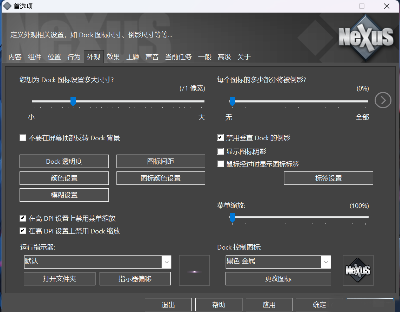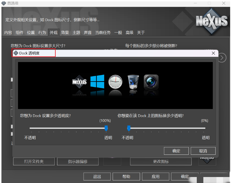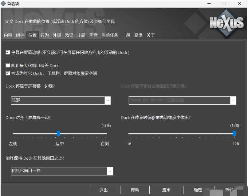 3、右键Nexus,点击首选项修改位置(需要点击下方应用和确定,才生效)。