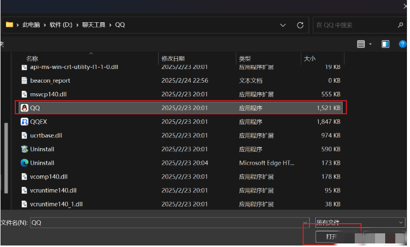 10、添加软件.exe例如QQ。