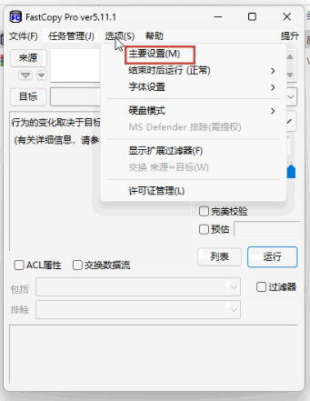 4、关闭设置窗口,重启 FastCopy,语言切换完成。