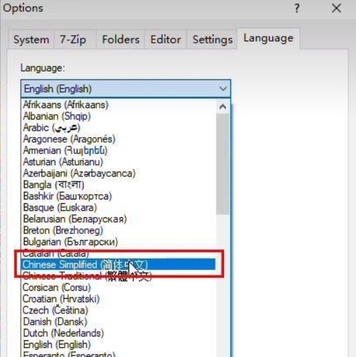 3、切换简体中文:点击选项框的下拉按钮,在列表中选择“简体中文”,最后点击“确定”按钮保存设置即可。