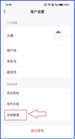 2、点击在安全信息下的终端管理,查看自己的终端列表。