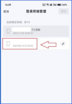 3、选中自己想要解绑的终端,最好多确认几次,以免解绑错了。