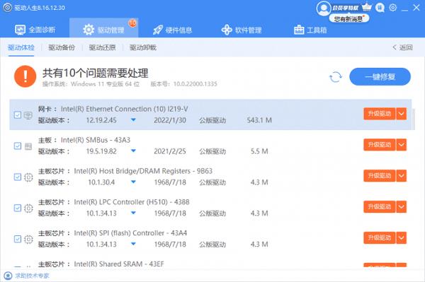 2、直接点升级驱动:扫完后看准无线网卡,如果有新版本直接点“升级驱动”让它自己装。