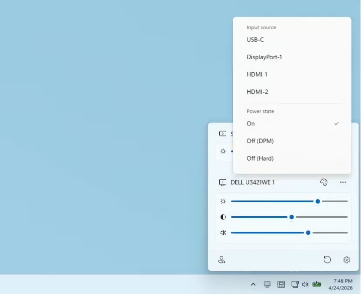 新增的Grab And Move功能极具实用性,用户按住Alt加鼠标左键即可在窗口任意位置拖动,右键可直接缩放,彻底告别精准点击标题栏的烦恼,大屏用户福音。另一项Power Display功能则将显示器控件集成至系统托盘,支持快捷调整音量、亮度、对比度及色彩配置,并能随系统深浅色主题自动切换显示方案。