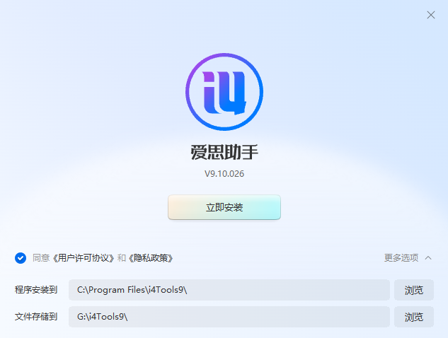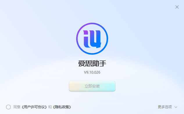 一、在本站下载最新版的爱思助手安装包,双击运行进入软件安装界面。