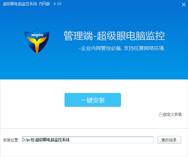 3.双击打开,进入超级眼局域网监控软件软件界面,选择安装位置,点击一键安装