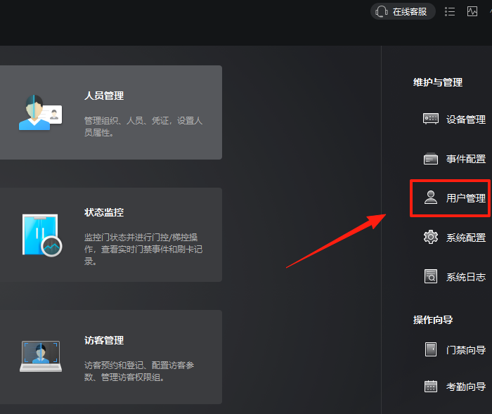 1、在软件右侧选择【用户管理】,