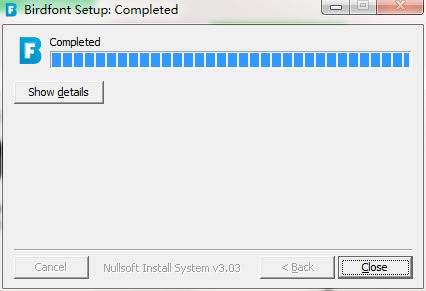 5.点击完成,birdfont软件安装成功