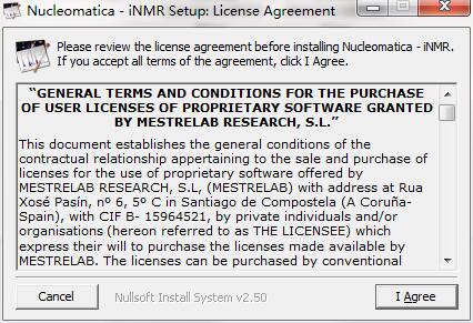 3.双击打开,进入iNMR软件界面,请仔细阅读下面的安装许可协议,是否接受上述许可证协议的所有条款,点击我同意