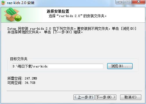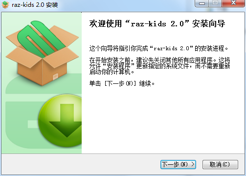 1、在PC下载网将报表工具下载下来,并解压到当前文件夹中,点击其中的raz-kids.exe应用程序,进入安装向导界面,接着点击下一步。