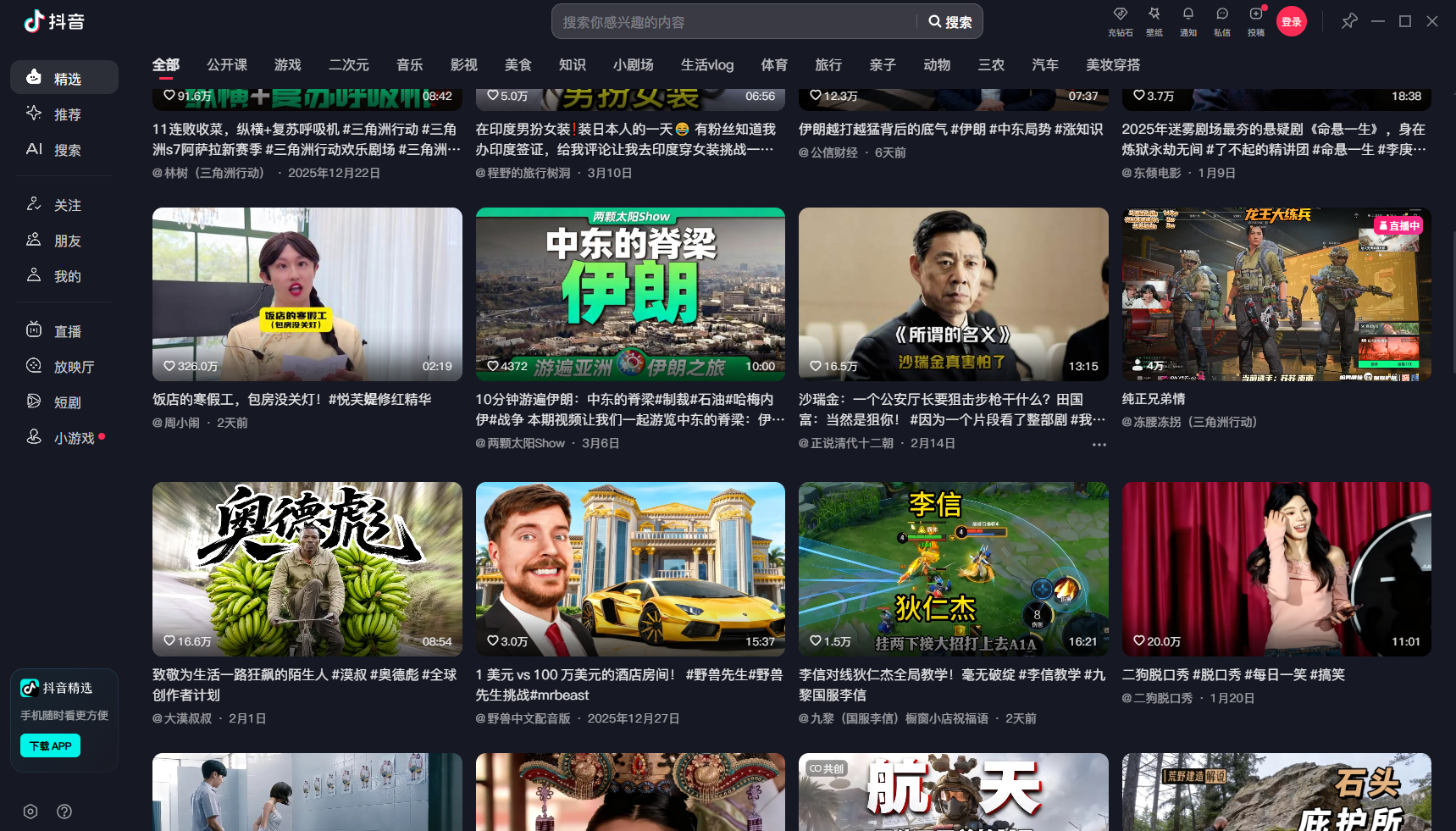 抖音电脑版是字节跳动官方推出的PC端短视频应用,大屏观看体验更清晰舒适,抖音电脑版支持滚轮浏览、小窗播放、直播互动与弹幕评论。抖音电脑版账号数据与手机端同步,可查看关注、推荐、收藏内容,还能上传发布视频、进行简单剪辑,满足日常娱乐、创作与直播观看需求。